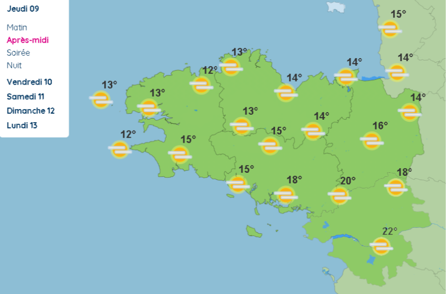 Samedi 11 avril : la pluie revient par l'ouest et toute la bretagne est progressivement concernée par cet épisode qui fait suite à une semaine ensoleillée. Les températures sont en baisse.