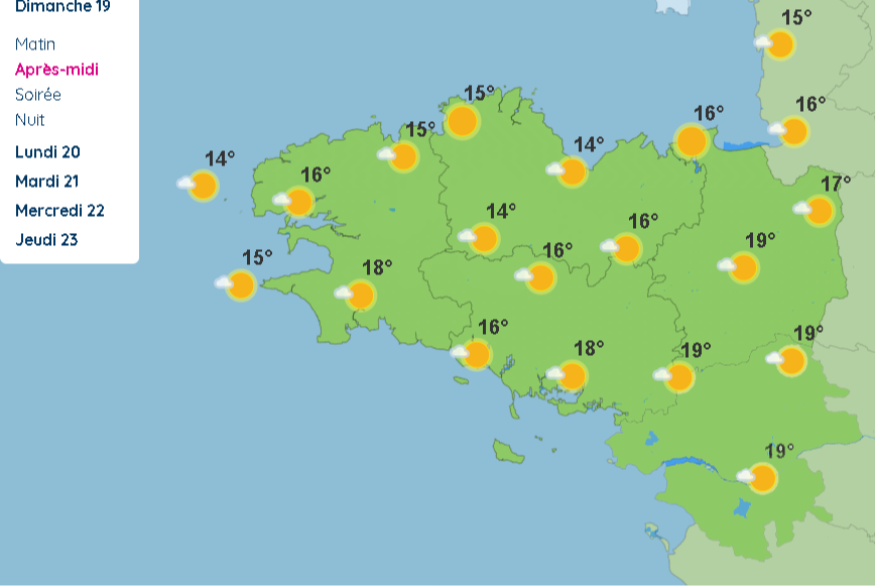 Dimanche 19 avril : du soleil. Températures de 16 à 22°.