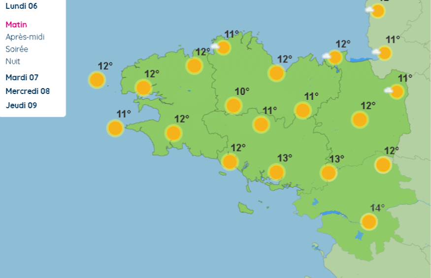 Samedi 4 avril : le ciel se dégage progressivement et laisse place à de belles éclaircies. Températures de 15 à 20° au meilleur moment de la journée.