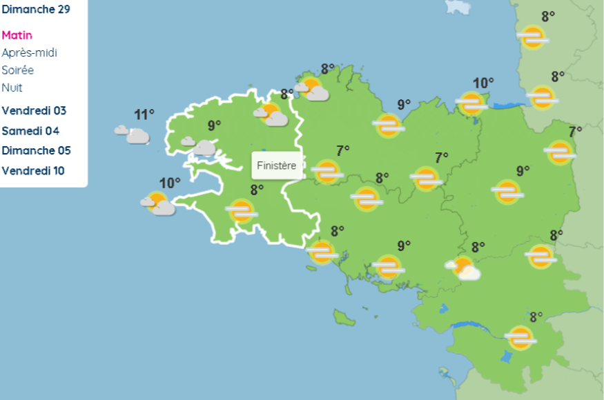 Dimanche 29 mars : après une matinée ensoleillée les passages nuageux seront fréquents l'après-midi avec des températures plus douces. Vent soutenu.