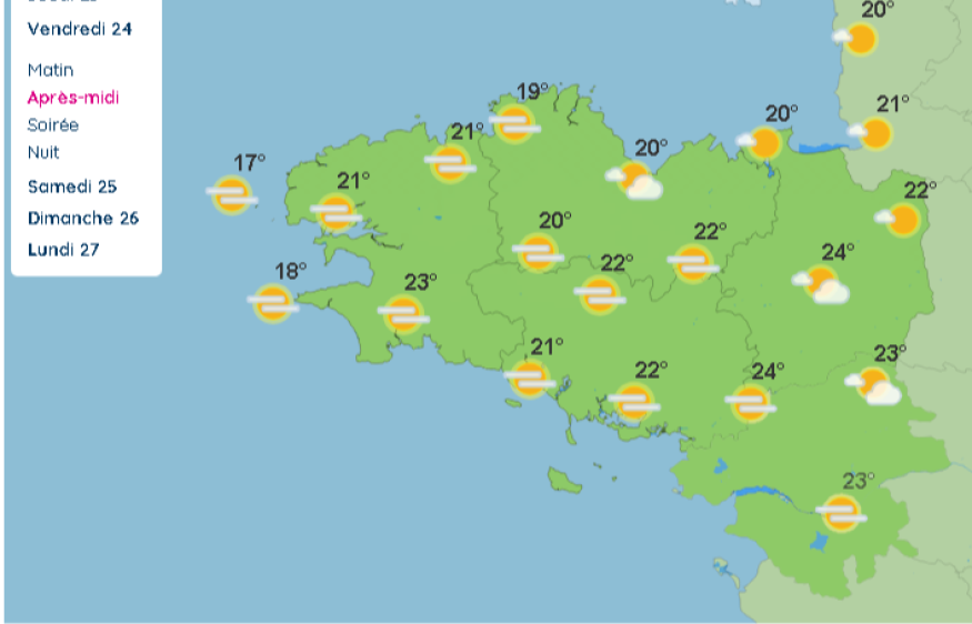 Vendredi 24 avril : beau et Chaud. Coté température la barre des 25° peut être dépassée.