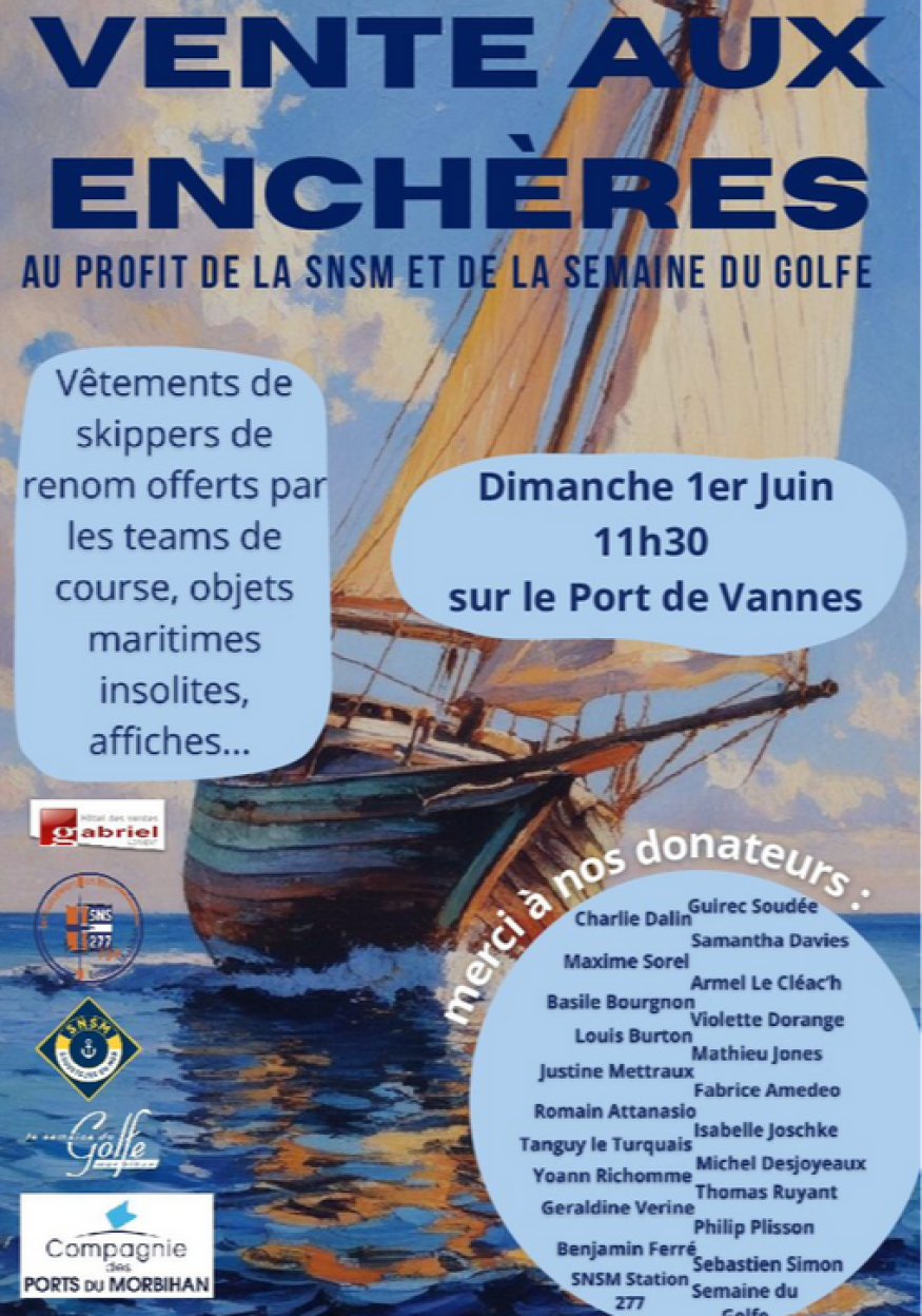 À l’occasion de la Semaine du Golfe 2025, la Compagnie des Ports du Morbihan organise une grande vente aux enchères solidaire au profit de la SNSM et de la Semaine du Golfe, le dimanche 1er juin à 11h30 sur le port de Vannes.