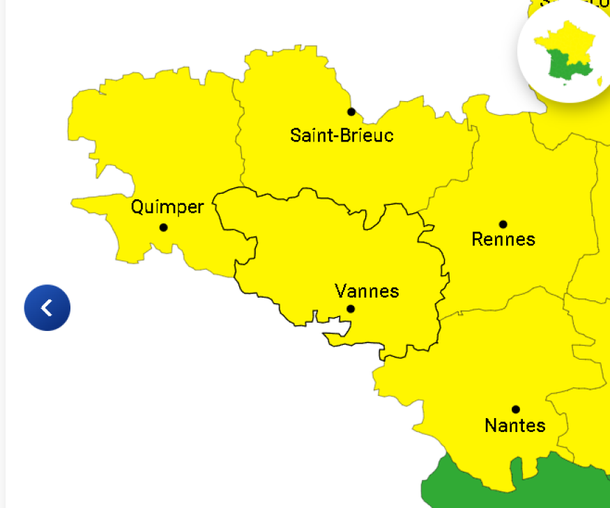 Mercredi 25 mars : un sérieux coup de vent balaie la Bretagne avec des rafales à plus de 100 km/h à la pointe Finistère. Plus de 60 km/h en centre Bretagne ou sur le bassin rennais. On a une vigilance jaune pour vent fort. Les températures sont en baisse en dessous de 5 ° la nuit et ne dépassant pas 14° au meilleur moment de la journée.
